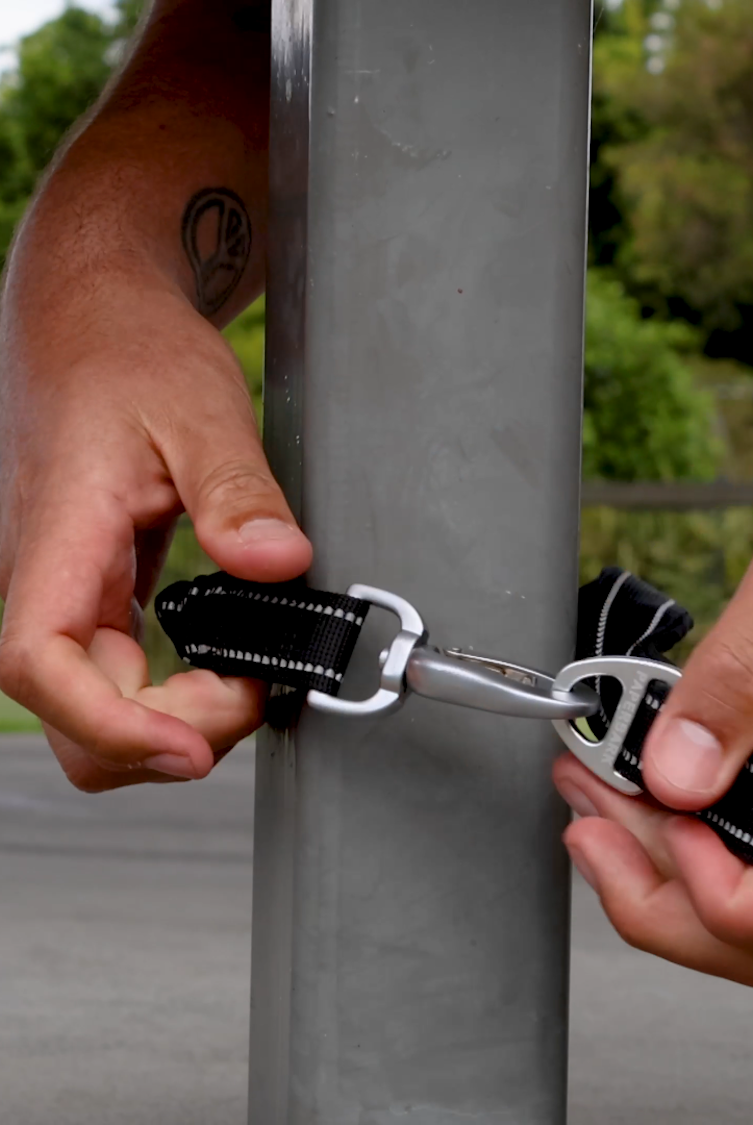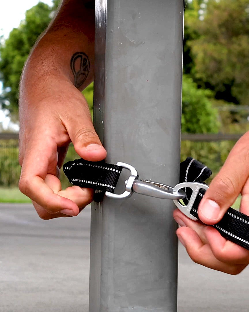 Secure your Furry Friend to a post at a cafe or shop without ever needing to unclip your dog’s harness.