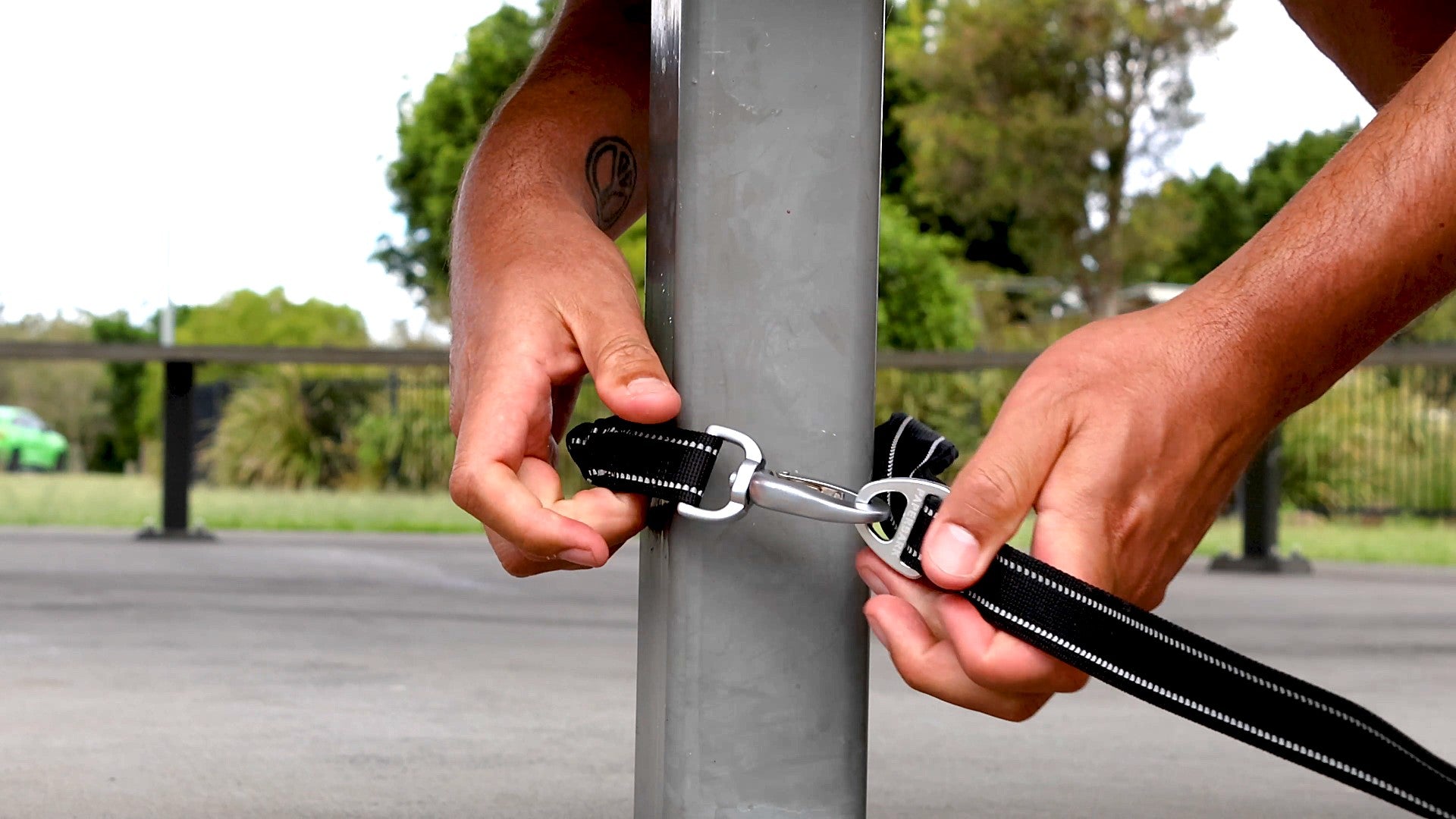 Secure your Furry Friend to a post at a cafe or shop without ever needing to unclip your dog’s harness.